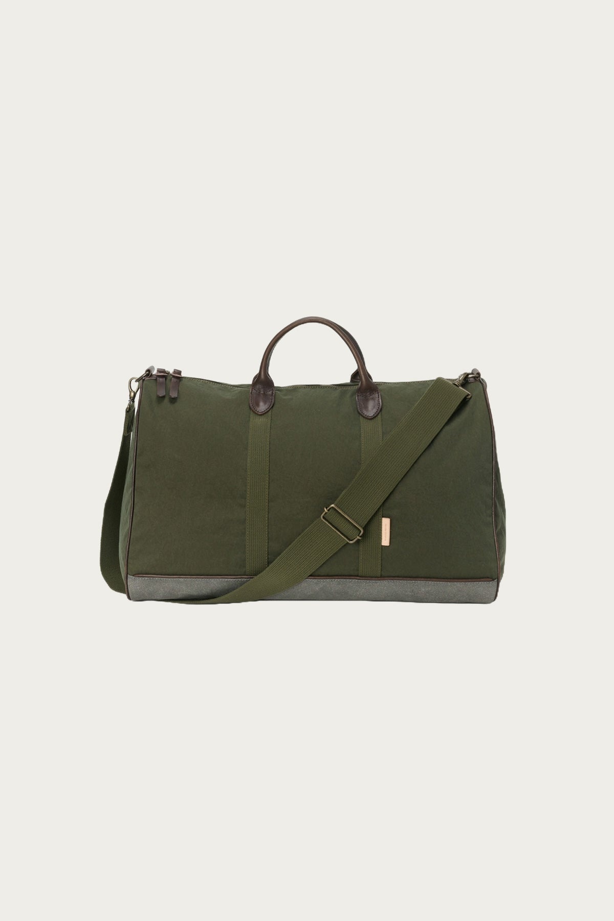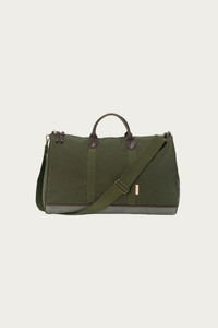 The Boston Luggage Bag in Khaki Green blends technical durability with quiet sophistication. A structured carryall in rugged nylon, softened by natural leather detailing that ages with you. The color lands somewhere between workwear and field gear, easy to pair and hard to wear out. Whether it’s packed for the weekend or hauling your daily kit, this one brings utility with just the right amount of soul. - Materials: 100% nylon body; cow leather accents; cow leather (60%) and latex (40%) base; acrylic tape - Dimensions: W50 × H31.5 × D27 cm - Handle drop: 11.5 cm - Adjustable shoulder strap: up to 120 cm - Zip closure - Vegetable-tanned leather tick tag - Made in Japan