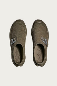 The newest in the coveted ORA Primo line, the ORA Primo EXT builds the futuristic comfort of the original into a style-forward mule construction. A full suede upper elevates the look and feel while a G-hook closure cinches down reflective webbing for a locked-in fit plus enhanced visibility. Underneath it all, the legendarily pillowy midsole babies the foot with maximal comfort, for however you enjoy your rest days. - Premium suede upper - Scratch rubber toe and heel details - Metal hardware - Neoprene collar lining - Dual-layer EVA midsole - 30% recycled rubber outsole - Antique Olive