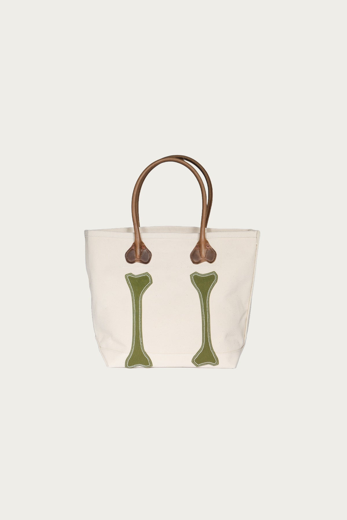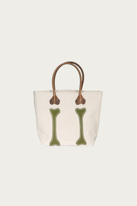 A compact carry in heavyweight canvas, this small tote features a playful bones design in khaki. - Japanese cotton canvas. - Dimensions Aprox W22cm × H25cm × D12cm. - Inner pocket included.