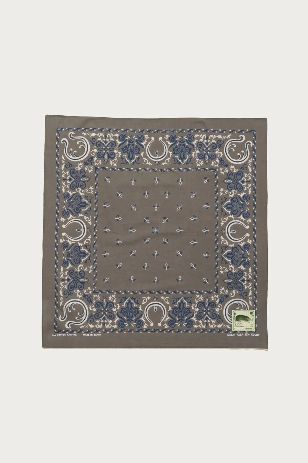 A classic Kapital bandanna that rewards close inspection. The selvedge cotton base gives it structure and longevity, while the intricate Naja inspired pattern brings in a sense of ritual and craft. It’s the kind of piece that quietly elevates whatever you do with it, whether worn or used. Tie it around your neck, tuck it into a back pocket, or use it as a daily carry accent. Looks especially good against faded denim and textured knits. - 100% Cotton - 30x30 - Kahki