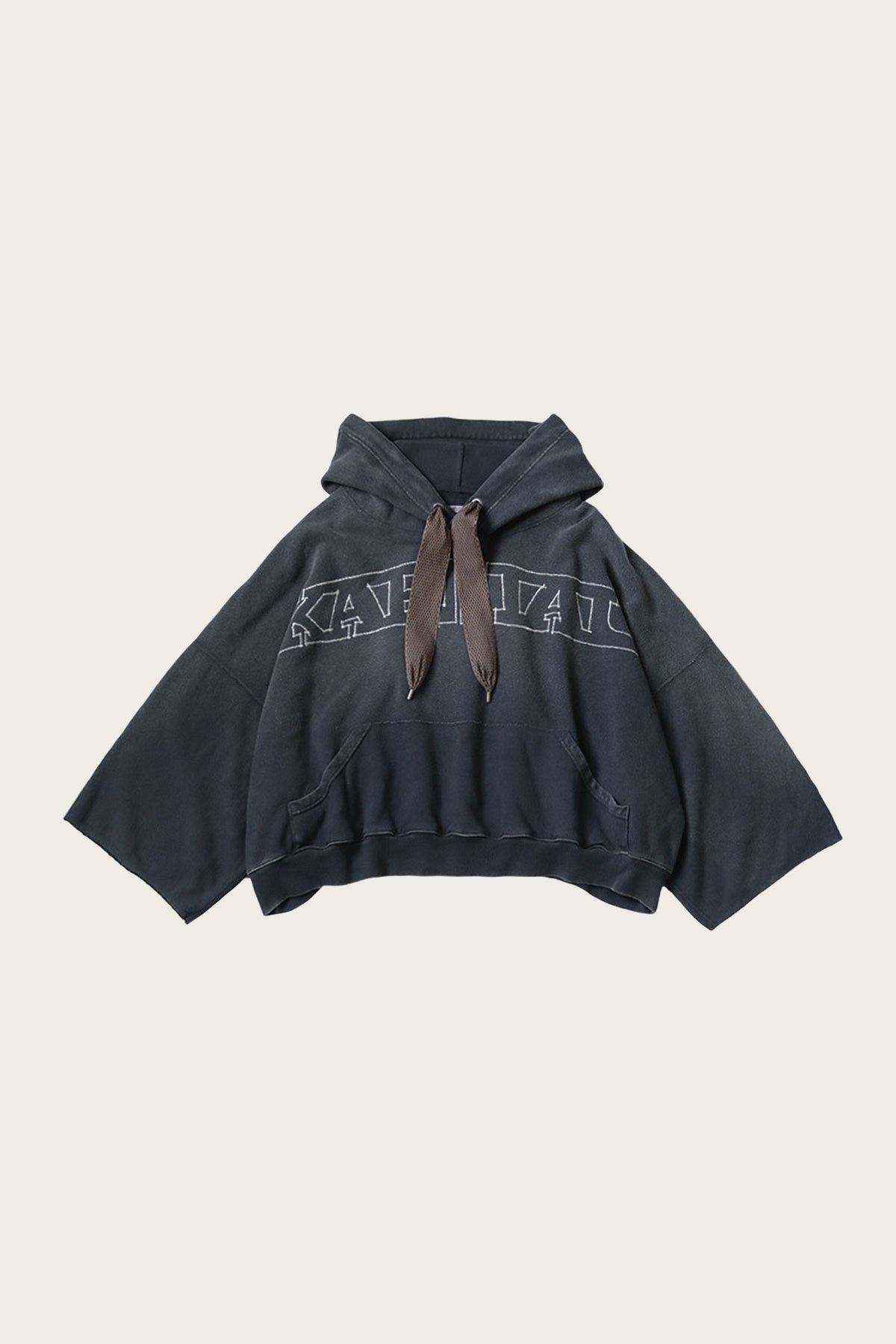 Introducing the SWT Knit DEVIL Hoodie - a short length sweatshirt with a big silhouette hood for a dramatic look. Made with dry washed fleece and featuring wide hood strings, this hoodie offers both style and comfort. The large Kapital logo across the chest adds a unique touch. - 100% Cotton - Kapital Logo - Black