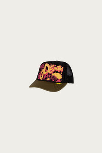 The TH.D.D. Trucker Cap from KAPITAL brings a playful edge to classic Americana. Built with a structured front panel and mesh back, it’s finished with bold foam print lettering across the front that gives it that signature KAPITAL quirk. Inside, a soft pile edging lines the interior for comfort, while the adjustable snapback keeps the fit easy and casual. Made in Japan with attention to the small details that make simple things feel special. - 100% polyester front with foam print - Mesh back: 100% nylon - Pile inner edging for comfort - Adjustable snapback closure - Made in Japan - Black/Olive