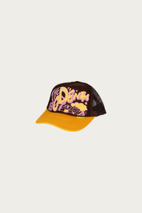The TH.D.D. Trucker Cap from KAPITAL brings a playful edge to classic Americana. Built with a structured front panel and mesh back, it’s finished with bold foam print lettering across the front that gives it that signature KAPITAL quirk. Inside, a soft pile edging lines the interior for comfort, while the adjustable snapback keeps the fit easy and casual. Made in Japan with attention to the small details that make simple things feel special. - 100% polyester front with foam print - Mesh back: 100% nylon - Pile inner edging for comfort - Adjustable snapback closure - Made in Japan - Brown/Yellow