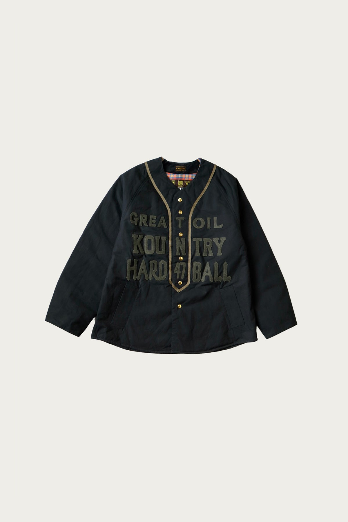 Weather Cotton Oil Coating Baseball Blouson - Black