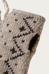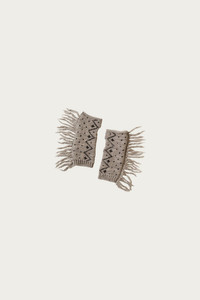 These hand warmers are one of those quietly iconic Kapital accessories. Knitted with a chunky 3-gauge wool blend and finished with long, unraveled fringe, they bring that handmade, slightly wild character that the brand does so well. The jacquard patterning shifts from small scattered dots to zigzag motifs, giving each pair a lived-in, textural feel. Wear them with oversized layers, denim, or anything that could use a little extra personality and warmth. - 3G chunky knit construction - Wool blend with soft handfeel - Signature Kapital fringe edges - Jacquard pattern throughout - Thumbhole opening - Made in Japan - Beige