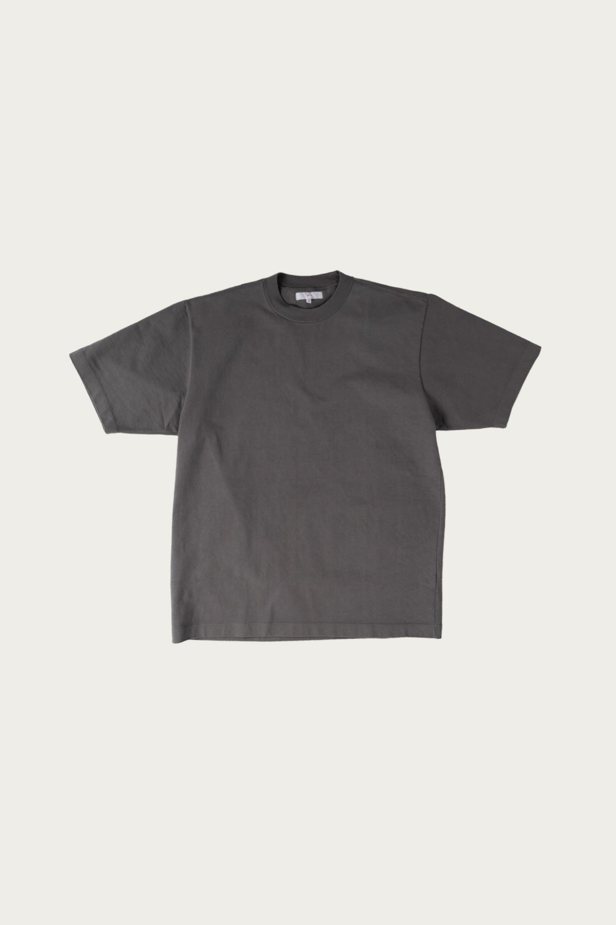 The Rugby T-shirt uses LW's custom ten-ounce jersey, the heaviest in their collection. Fits wide in the shoulders and chest and set with a high neckline. A soft, smooth hand balances the stiff, structured drape. Softens after many washes while retaining shape. - Knit, cut, and sewn in Los Angeles, CA - Ribbed collar - 100% US cotton - Kelp