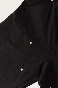 A refined twist on utilitarian denim from MM6 Maison Margiela, these Double Knee Trousers are clean-cut yet character-rich. Cut from 100% cotton and made in Italy, they feature a high-waisted, straight-leg silhouette that's both timeless and subtly architectural. Horizontal seams at the knees nod to workwear heritage, while wide belt loops and four functional pockets keep things grounded in daily utility. Finished with MM6’s iconic white stitch detail at the rear for quiet distinction. A versatile black pant that plays well with relaxed tailoring, boxy outerwear, or a tucked tee. Tailored and tough in equal meaure. - 100% Cotton - Made in Italy
