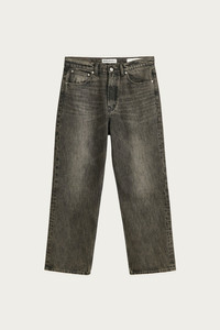 Our Third Cut in Nocturne Dust Wash. Produced in Turkish cotton and recycled polyester denim that has undergone specialized washing, treatment and tinting processes that enhance its depth and texture, creating a subtly nuanced surface. The men's Third Cut has a relaxed fit with a wide straight leg and features a YKK zip fly, metal rivets, five pockets with reinforced back pockets, and the Our Legacy rubber patch. This garment is manufactured using carefully sourced material with a unique treatment process that will give each garment an individual shade and appearance. This technique could result in some color bleed onto lighter garments or surfaces. The garment shall be shaped by its wearer and naturally distress over time to finish the design process.