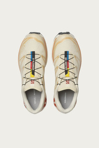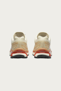Originally launched in 2013, the XT-6 is the preferred footwear of world-class athletes for ultra-distance races under harsh conditions. It now returns with updated colorways like this cream version with bright branding on the tongue. Aesthetically popping, these still have the same level of cushioning, durability and descent-control that Salomon Advanced is renown for. Fits true to size. Sizing is in US Men's. - Agile Chassis™ System - Abrasion-resistant TPU material - EndoFit™ - Contagrip® TA - Dual density midsole - Single layer Mesh - Mesh and textile lining - Lace pocket - SensiFit™ - Molded OrthoLite® sockliner - Quicklace™ - Almond Milk/Soft Clay/Burnt Ochre