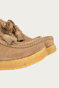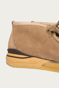 The Beuys Trekker-Folk from Visvim blends traditional craftsmanship with contemporary design. Hand-sewn from UK vegetable-tanned cowhide, each pair features a pigment-free leather lining and a natural cork insole for a unique, personalized fit. The TPU heel stabilizer and crepe outsole provide enhanced comfort and durability. - UK Vegetable Tanned Cowhide - Hand-Sewn Upper - Pigment Free Leather Lining and Natural Cork Insole - TPU Heel Stabilizer - Crepe Outsole - Sand