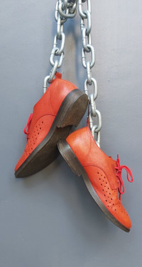 Ann Demeulemeester Red Leather Peek-a-boo Derby