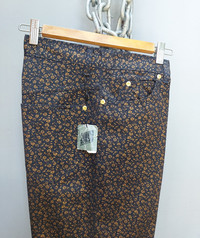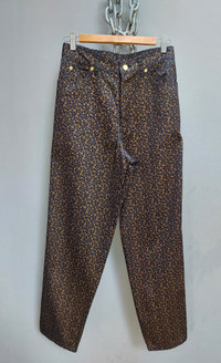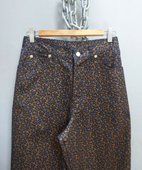 Tag size: 29 PLEASE CHECK MEASUREMENTS BEFORE PURCHASING. TAG SIZE MAY NOT REFLECT TRUE FIT Unisex Vintage-Inspired Floral Brocade Pants (Straight Cut – Originally Men’s Style) This piece is a standout—perfect for anyone who loves unique, retro-inspired fashion. Originally a men’s cut, but absolutely wearable for all genders. The bold floral brocade fabric gives it a stylish, gender-neutral flair. ● Straight cut with a slightly tapered leg ● High-waist fit ● Button fly with embossed gold-tone buttons ● Classic 5-pocket style with gold hardware ● Eye-catching black and gold floral print ● Structured fabric with a slight sheen Dress it up or down—perfect with a crisp shirt, a basic tee, or even a cropped top for contrast. Whether you’re going for androgynous chic or vintage cool, this piece has you covered. Disclaimer: The photos were taken on different days and at different times, using natural sunlight. As a result, variations in image pappearance may occur due to the sun’s reflection. Dimension Waist: 14.5" x2 Front rise: 13" Thigh: 13" x2 Knee: 10.5" x2 Inseam: 32" Leg opening: 7" x2 Outseam/Total length: 43" Composition 100% cotton Made in Italy Ask all you want before buying Accept payments through PAYPAL/STRIPES only Courier: DHL Express Location: Manila, Philippines