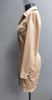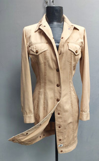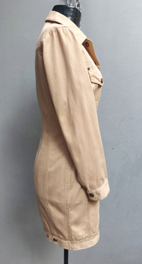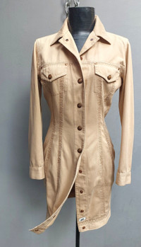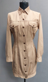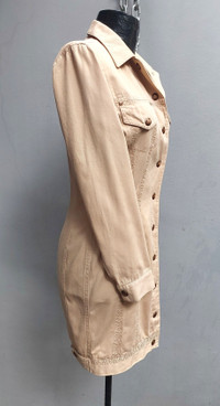 Tag size: S A classic Junior Gaultier shirt dress in beige, crafted with structured tailoring that highlights the waist for a flattering silhouette. Features a collared neckline, long sleeves with buttoned cuffs, and a full button-down front. The dress is accented with chest flap pockets and tonal stitched paneling, giving it a subtle utilitarian edge. Finished with signature Gaultier-style wooden buttons for a refined touch A collectible Gaultier piece with Japanese craftsmanship, perfect for both casual chic and statement PLEASE CHECK MEASUREMENTS BEFORE PURCHASING. "TAG SIZE MAY NOT REFLECT TRUE FIT." DISCLAIMER: Product colour may slightly vary due to photographic lighting Dimension Shoulders: 16" Bust: 18.5" Waist: 14" Hips: 19" Sleeve length: 22.5" Length from nape: 33.5" Hem width: 15.5" Composition 100% cotton Made in Japan Ask all you want before buying Courier: DHL Express Location: Manila, Philippines