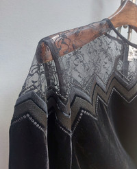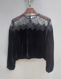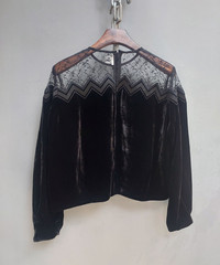 Tag size: S - oversized / boxy PLEASE CHECK MEASUREMENTS BEFORE PURCHASING. "TAG SIZE MAY NOT REFLECT TRUE FIT." DISCLAIMER: Product colour may slightly vary due to photographic lighting Will be shipped semi-ironed Elevate your wardrobe with this striking Noir Kei Ninomiya piece, crafted with the brand’s signature balance of elegance and edge. The top features a plush black velvet body contrasted with delicate lace panels across the neckline and shoulders, creating a refined yet modern silhouette. The zigzag trim detail adds a bold architectural touch, while the sheer lace offers a subtle play of transparency. Style: Perfect for evening wear, special occasions, or as a statement layering piece A beautifully constructed garment that embodies Noir Kei Ninomiya’s avant-garde craftsmanship. Dimension Shoulders: 17" Bust: 23" Waist: Sleeve length: 23.5" Length from nape: 20" Hem: 21" Composition Velvet 77% rayon 23% silk Tulle 100% nylon Made in Japan Ask all you want before buying Accept payments through PAYPAL/STRIPE Courier: DHL Express Location: Manila, Philippines