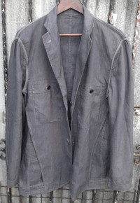 Dimensions Shoulders: 20 inches - 51cm. Pit to pit: 46 inches - 117cm. Arm/Bicep: Sleeve length: 26 inches - 66cm. Cuff/Wrist: 5.5 inches - 28cm. Length from nape: 31 inches - 79cm. - Unnoticeable stain on some parts. Please refer to the last 2 images - Taken outdoors so color of item may appear washed out. Will provide more photos if interested. - Fabric can be dyed into black color Composition 100% cotton Made in Japan Ask all you want before buying No Return, No Exchange, No Refunds Accept payments through PAYPAL only Courier: DHL Express Location: Manila, Philippines
