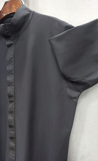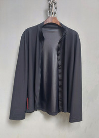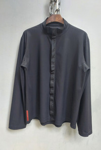 Tag size: L PLEASE CHECK MEASUREMENTS BEFORE PURCHASING. TAG SIZE MAY NOT REFLECT TRUE FIT." Description: Elevate your wardrobe with this sleek, modern long sleeve shirt designed with a minimalist aesthetic and subtle techwear elements. Crafted from lightweight, breathable fabric, it blends comfort with a contemporary edge — perfect for everyday wear or layering with streetwear styles. Features: ● Open front design (no visible buttons for a clean silhouette) ● Soft, stretchable fabric for all-day comfort ●Unique structured collar that can be styled flat or standing ● Subtle inner mesh patches underarm for enhanced ventilation ● Red label accent near the hem for a touch of contrast ● Relaxed fit with fluid drape Specific Details: - Color: Solid black with matte finish - Fabric: Soft polyester-spandex blend - Fit: Loose/relaxed cut - Collar: Convertible collar (wear open, semi- zipped, or fully fastened) - Accents: Ribbed mesh panels under arms for breathability, red vertical tag near left hem - Style: Unisex / Techwear / Minimalist / Street casual Disclaimer: The photos were taken on different days and at different times, using natural sunlight. As a result, variations in image appearance may occur due to the sun’s reflection. Dimention Shoulders: 20" Chest/Pit: 23.5" x2 Sleeve length: 25" Length from nape: 28" Hem: 23.5" x2 Composition 80% nylon 20% spandex Made in Italy Ask all you want before buying Accept payments through PAYPAL/STRIPE Courier: DHL Express Location: Manila, Philippines