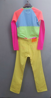 Tag size Tshirt: Small Pants: 30 PLEASE CHECK MEASUREMENTS BEFORE PURCHASING. "TAG SIZE MAY NOT REFLECT TRUE FIT." DISCLAIMER: Product colour may slightly vary due to photographic lighting COLORBLOCK NEON LONG SLEEVE TEE & YELLOW PANTS SET Vibrant and unapologetically fun, this eye-catching combo features a colorblock long sleeve tee in neon pink, orange, blue, and lime green—paired with striking lemon-yellow pants. A perfect match for those who love standing out, playing with color, and expressing fearless personal style. Ideal for festivals, streetwear looks, or making everyday feel electric. Dimension Tshirt Shoulders (approx): 16" Chest/Pit relax: 17.5" stretch: 21" or more Arm relax: 5.5" stretch: 7.5" or more Sleeve length: 23" Length from nape: 26" Arm opening relax: 4" stretch: 6" or more Hem width relax: 17" stretch: 21" or more Composition 100% nylon Made in Italy Pants Waist: 15.5" Front Rise: 11" Thigh: 11" Knee: 8" Inseam: 32" Outseam (total length): 41.5" Leg Opening: 8" Composition Pants 50% cotton 50% nylon/polyamide Made in Italy Ask all you want before buying Accept payments through PAYPAL/STRIPE Courier: DHL Express Location: Manila, Philippines