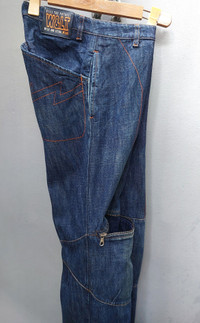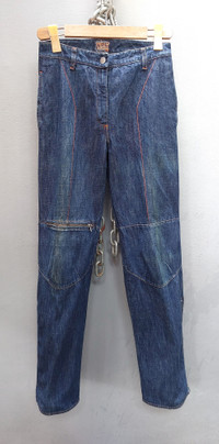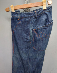 Tag size: 27 - UNISEX, more on Ladies PLEASE CHECK MEASUREMENTS BEFORE PURCHASING. "TAG SIZE MAY NOT REFLECT TRUE FIT." Description: A rare and avant-garde pair of denim pants by W<, the cult-favorite brand known for pushing boundaries in fashion. Features: Signature Lightning Pocket Stitching: Bold red lightning-shaped stitching on the rear pockets and front side pocket, a hallmark W< detail. Articulated Patchwork Construction: Multi-panel leg design with angular seamlines and visible topstitching that adds texture and structural interest. Unique Pocket Placement: Includes an asymmetrical front pocket design and a functional zippered pocket on the right thigh for added edge and utility. Vintage Distressed Wash: Classic medium-dark indigo denim with subtle vintage fade and whiskering for a worn-in appeal. Branded Label: "Kiss the Future - W< - Wild and Lethal Trash" leather patch at the back waistband. Condition: Pre-owned, good vintage condition. Natural wear enhances the unique character of the denim. All zippers and hardware functional. Disclaimer: The photos were taken on different days and at different times, using natural sunlight. As a result, variations in image appearance may occur due to the sun’s reflection. Dimension Waist: 14" x2 Front rise: 10" Thigh: 11.5" Inseam: 34" Knee: 9.5" x2 Leg opening: unzip: 9" x2 open zip: 11" Outseam/Total length: 44" Composition 100% cotton denim Made in Italy Ask all you want before buying Accept payments through PAYPAL/STRIPE Location: Manila, Philippines Courier: DHL Express