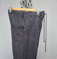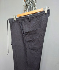 Tag size: 3 PLEASE CHECK MEASUREMENTS BEFORE PURCHASING. TAG SIZE MAY NOT REFLECT TRUE FIT." FLAWS: Description: Upgrade your streetwear essentials with these versatile black utility pants, designed for everyday comfort and functional style. Featuring a tapered cut for a modern silhouette, these pants blend casual and utility fashion effortlessly. Ideal for laid-back styling or an edgy urban look. Features: ● Color: Classic black ● Material: Lightweight cotton-blend fabric (slightly crinkled texture for a relaxed vibe) ● Fit: Tapered leg cut with a slightly cropped length ● Closure: Button and zip fly with drawstring for added adjustability ● Waist: Belt loops for styling flexibility ● Pockets: ▪︎Two angled side pockets ▪︎Two roomy flap-style back pockets with double stitching detail ▪︎One side cargo-style pocket on each leg for utility flair ● Stitching: Reinforced seams and detailed panel construction for durability and style ● Unisex appeal — fits a variety of streetwear styles Dimension Waist: 16.5" x2 Front Rise: 10" Thigh: 12" x2 Knee: 10" x2 Inseam: 28" Outseam: 37 Leg Opening: 7" x2 Composition 100% cotton Made in Japan Ask all you want before buying Accept payments through PAYPAL/STRIPE Courier: DHL Express