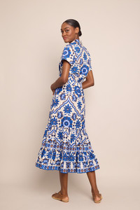 The Chase Skirt has a tiered a-line cut made from breathable cotton poplin with an elastic waistband so you can style it high or low on the hips. Pull on. Double tiered midi skirt with elastic waistband. Placed print. Details • 100% Cotton Poplin • Dry Clean Only or Hand Wash Cold • Made in China