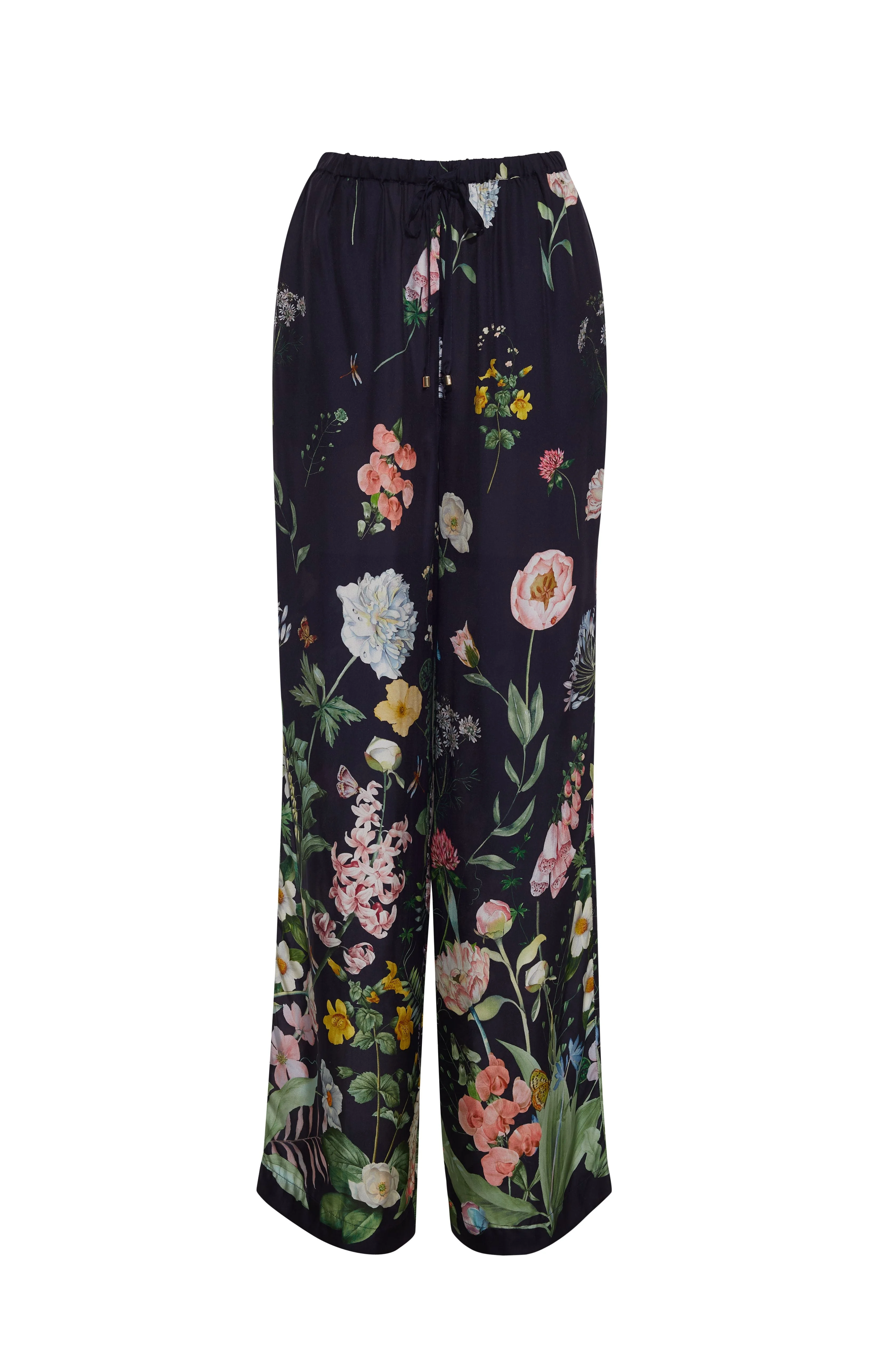 • Easy, flowy pull on drawstring pants with adjustable ties and gold cord ends • Elasticated waistband • Side seam pocket bags • Placed print • Unlined Details • 29% Silk 71% Viscose • Dry Clean Only or Hand Wash Cold • Made in China