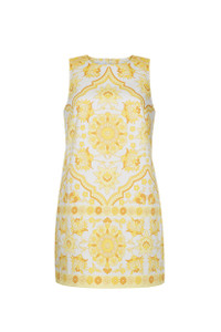 • Retro crewneck shift dress • Center back zipper opening with hook-and-eye closure • Bust darts • Functional pockets • Placed print • Fully lined Details • 97% Cotton 3% Spandex; 100% Poly Lining • Dry Clean Only or Hand Wash Cold • Made in China