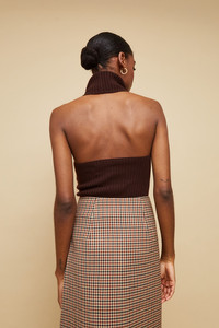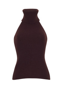 Samson Top Statement Elegance: Form-Fitting Ribbed Knit Halter with an Open Back and Luxurious Overs