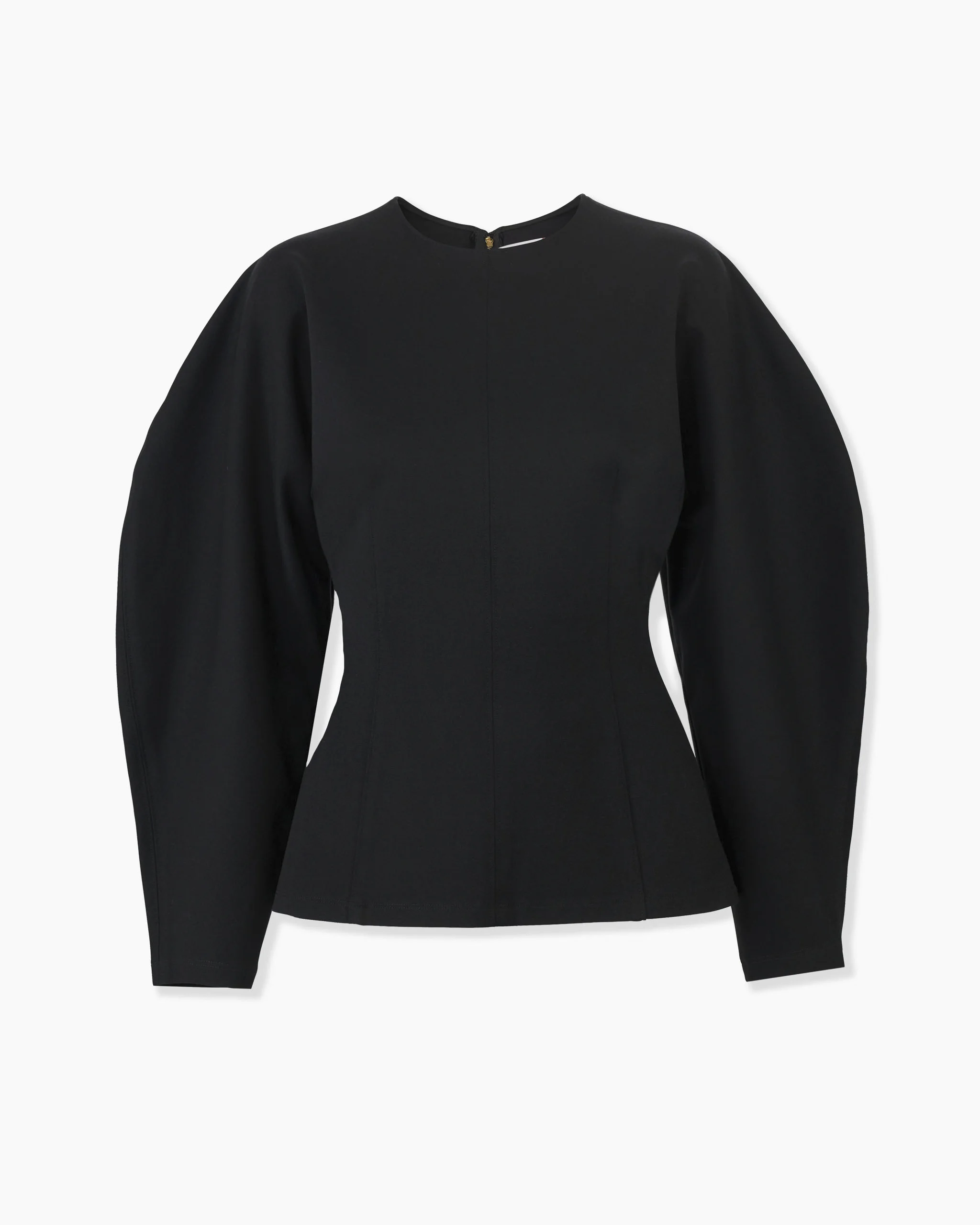 Cut from soft ponte jersey, this top features sculptural arc sleeves and a defined waist for a distinctive silhouette. Style it with the matching Slim Fit Flared Ponte Pants. SKU R2615N217PNT SIZE & FIT Close-fitting bodice with oversized sleeves Midweight ponte knit Model is 177cm/ 5’9” and is wearing a US 2 Bust: 31" Waist: 24" Hips: 35.5" COMPOSITION & CARE 62% Viscose 33% Nylon 5% Elastane Washing Instructions Dry Clean Only Made in China