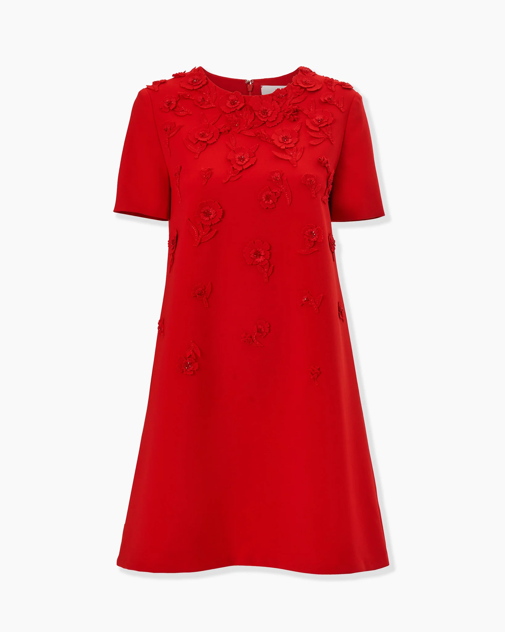 The shoulders and front of this swingy mini dress are adorned with dimensional carnation embroideries finished with shimmering beadwork. Inspired by Madrid’s signature candies, the striking violet hue is available exclusively online and in Carolina Herrera boutiques. Side pockets Concealed zip fastening at the back SKU S2611E545SFR SIZE & FIT Regular fit Midweight stretch-crepe Model is Regular fit180cm/ 5’7” and is wearing a US 2 Bust: 29" Waist: 24" Hips: 33.5" COMPOSITION & CARE 92% Polyester 8% Polyurethane Washing Instructions Dry Clean Only Made in India