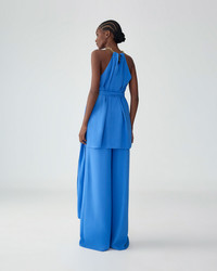 This flowing halterneck top is cut from lightweight satin-crepe in a hue inspired by the Aegean Sea. It gathers along a chain-link strap and cinches at the waist with a luxuriously long sash. Self-sash SKU R2611N210SBC SIZE & FIT Regular fit Lightweight crepe Model is 178cm/ 5’10” and is wearing a US 2 Bust: 32" Waist: 23" Hips: 34" COMPOSITION & CARE 100% Polyester Washing Instructions Dry Clean Only Made in Italy