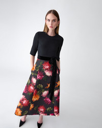 Bold chrysanthemums inspired by Flemish oil paintings bloom across the faille skirt of this dress, detailed with a black crepe bodice and a velvet ribbon belt. SKU C2611N508CYF SIZE & FIT Close-fitting bodice, voluminous skirt Midweight faille Model is 178cm/ 5’10” and is wearing a US 2 Bust: 32" Waist: 23.5" Hips: 34.5" COMPOSITION & CARE 100% Polyester Washing Instructions Dry Clean Only Made in United States of America
