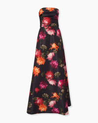 Chrysanthemum-Print Strapless Gown