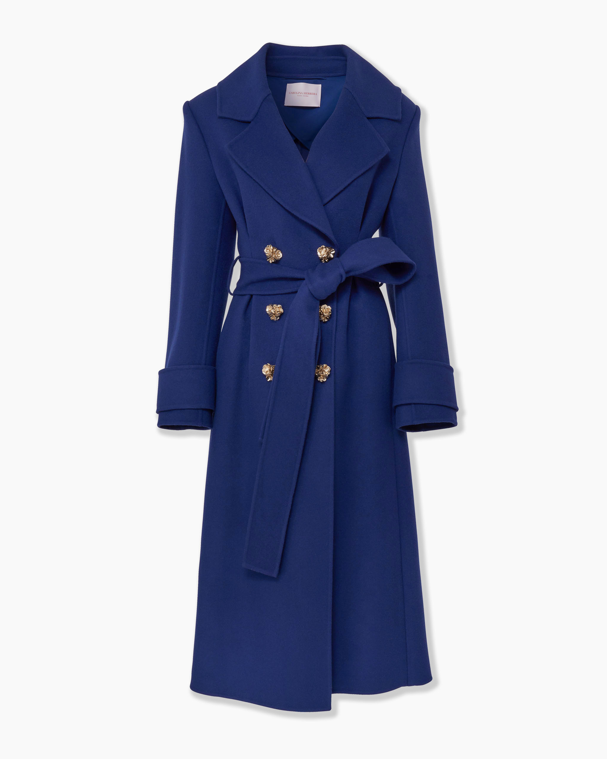 The classic peacoat is reimagined with this long-length version, tailored in double-faced virgin wool with a wide lapel collar and belted waist. Intricately sculpted floral buttons give it an opulent feminine finish. Decorative buttons Concealed snapped closures at the front SKU F2511N603DFC SIZE & FIT Relaxed, slightly oversized fit Heavyweight wool Model is 179cm/ 5’11” and is wearing a US 2 Bust: 33" Waist: 23" Hips: 34.5" COMPOSITION & CARE 100% Virgin Wool Washing Instructions Dry Clean Only Made in Italy