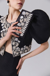 Intricate pearl and crystal beading decorates this Marquise clutch. Style it with the matching jacket from the collection. Washing Instructions Spot Clean Made in SPAIN SKU F2431E606STN