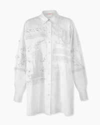 This oversized white shirt is cut from stretch-cotton and intricately embroidered with Greek-inspired motifs of temples, lyres, and scrolls. Wear it alone or styled with a mini skirt. Point collar Buttoned front SKU R2611E219SCT SIZE & FIT Slightly oversized fit Midweight stretch-cotton Model is 177cm/ 5’9” and is wearing a US 2 Bust: 31" Waist: 24" Hips: 35.5" COMPOSITION & CARE 97% Cotton 3% Polyurethane Washing Instructions Dry Clean Only Made in India
