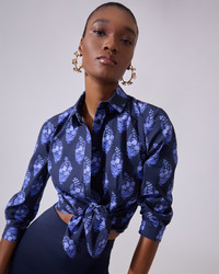 This stretch-cotton Icon shirt showcases a beautiful floral block print. Buttoned front SKU E2511N215FMP SIZE & FIT Regular Fit Midweight stretchy cotton Model is 180cm/ 5’11” and is wearing a US 2 Bust: 31" Waist: 23" Hips: 34.5" COMPOSITION & CARE 97% Cotton, 3% Elastane Washing Instructions Dry Clean Only Made in Italy