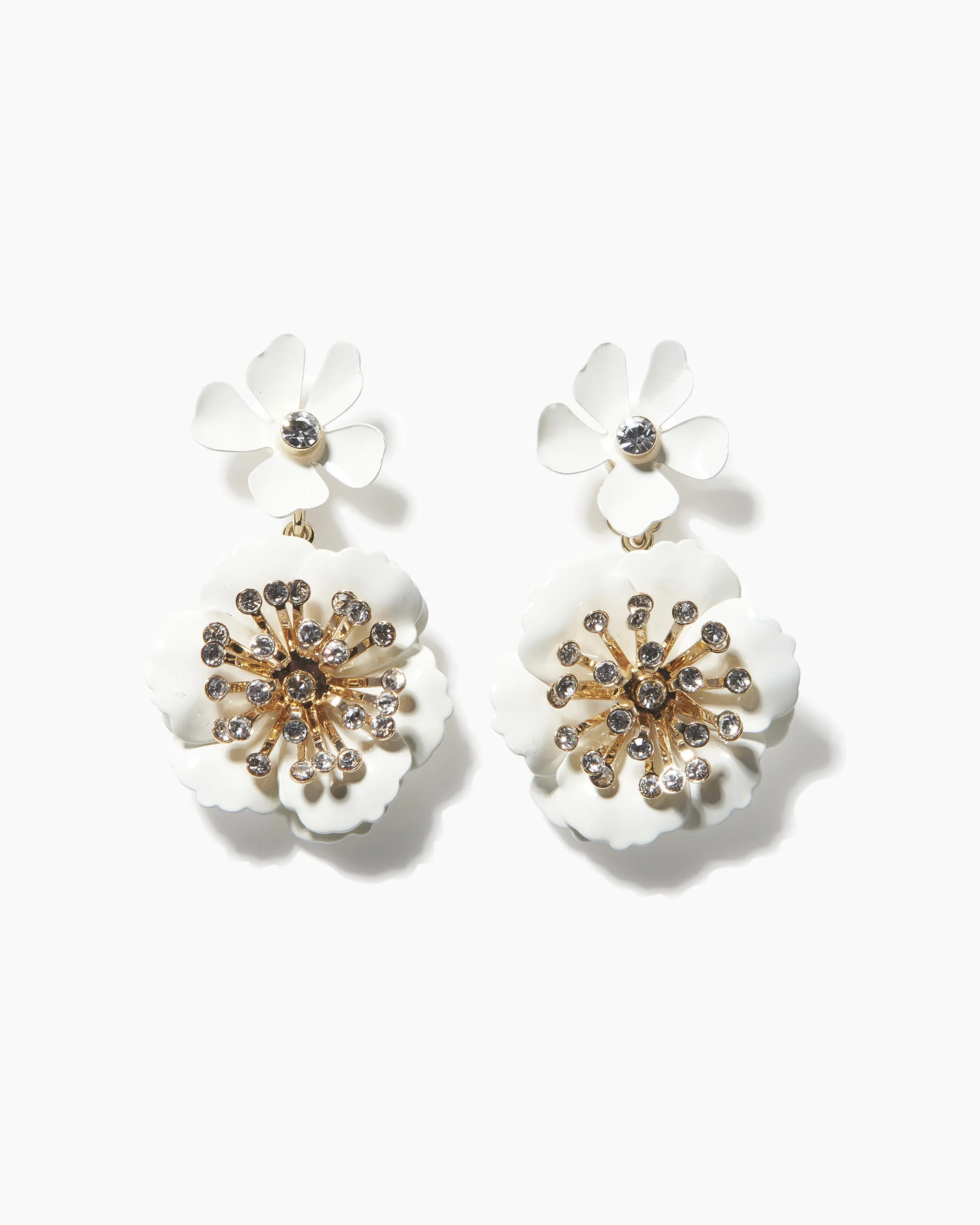 Glittering crystals bloom at the center of these sculptural floral earrings. SKU R2636N205MET COMPOSITION & CARE 81% Brass 3% Steel 12% Enamel Coating 2% Glass 2% Cubic Zirconia Stone Washing Instructions Spot clean only Made In China