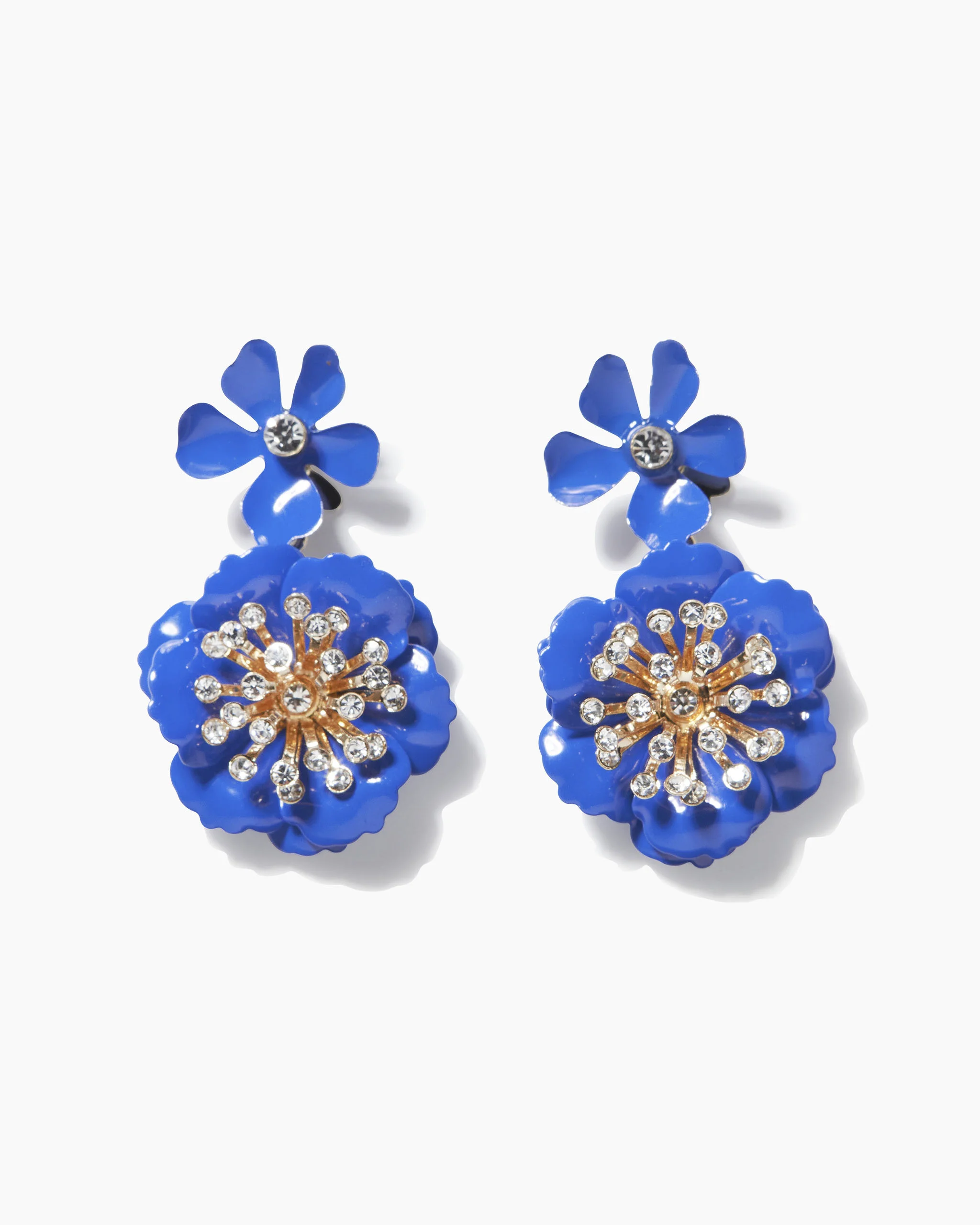 Glittering crystals bloom at the center of these sculptural floral earrings. SKU R2636N205MET COMPOSITION & CARE 81% Brass 3% Steel 12% Enamel Coating 2% Glass 2% Cubic Zirconia Stone Washing Instructions Spot clean only Made In China