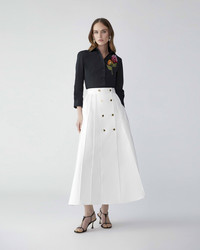 Our Icon Shirt is reimagined this season with vividly embroidered poppies, bringing a bold floral twist to a signature silhouette. Point collar Buttoned front SKU R2611E215SCT SIZE & FIT Slim fit Midweight stretch-cotton Model is 175cm/ 5’9” and is wearing a US 2 Bust: 31.5" Waist: 23.5" Hips: 34.5" COMPOSITION & CARE 97% Cotton 3% Polyurethane Washing Instructions Dry Clean Only Made in India