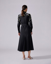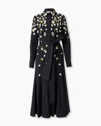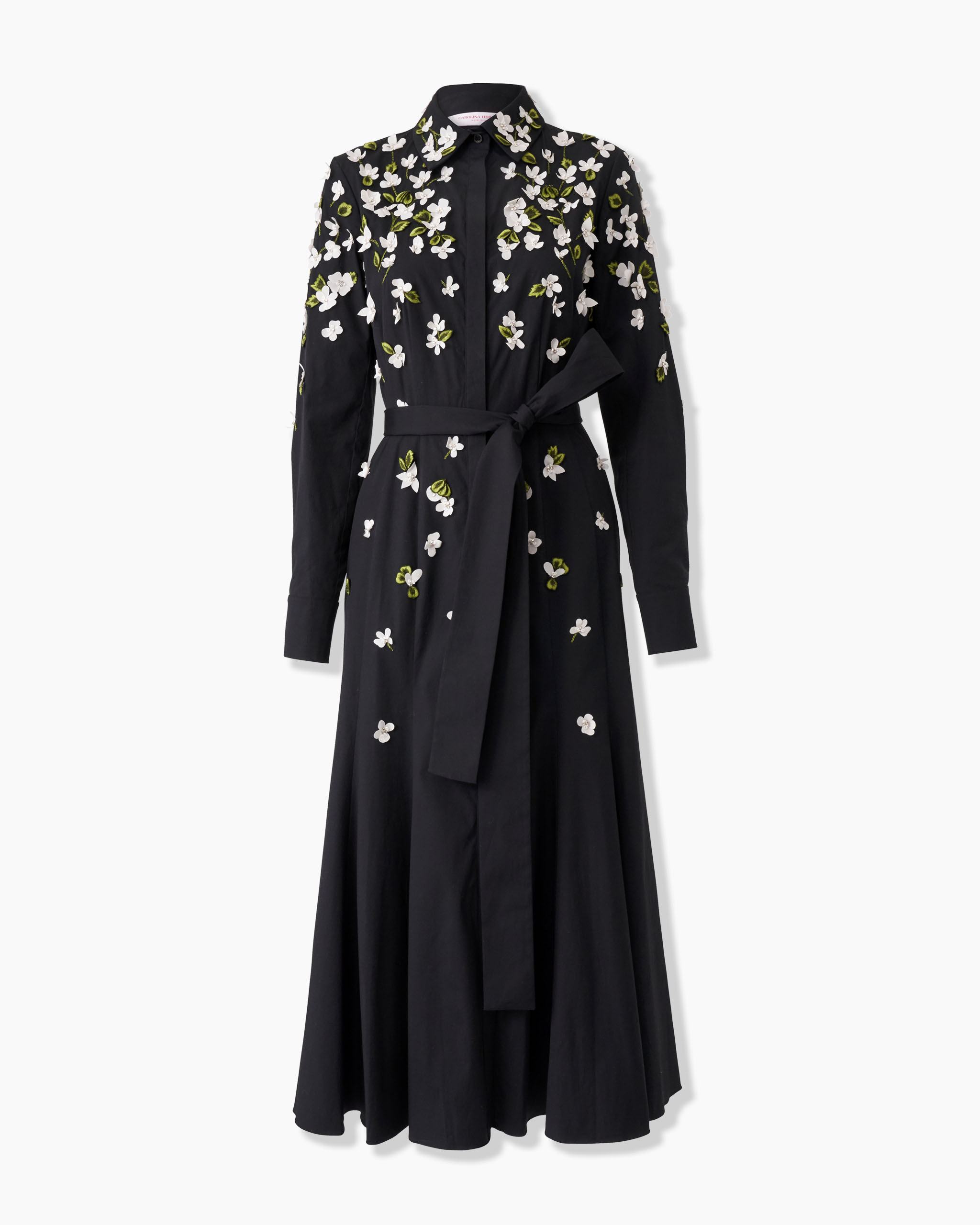 Cut from stretch-cotton, this midi shirt-dress is hand-embroidered with 3D jasmine flowers made from silk with crystal centers and threadwork leaves. A sash tie defines the silhouette. Keyhole back with concealed hook-and-eye closure SKU P2511E524SCT SIZE & FIT Fitted bodice with A-line midi skirt Midweight stretch-cotton Model is 180 cm/ 5’11” and is wearing a US 2 Bust: 32" Waist: 23" Hips: 35" COMPOSITION & CARE 97% Cotton 3% Polyutherane Washing Instructions Dry Clean Only