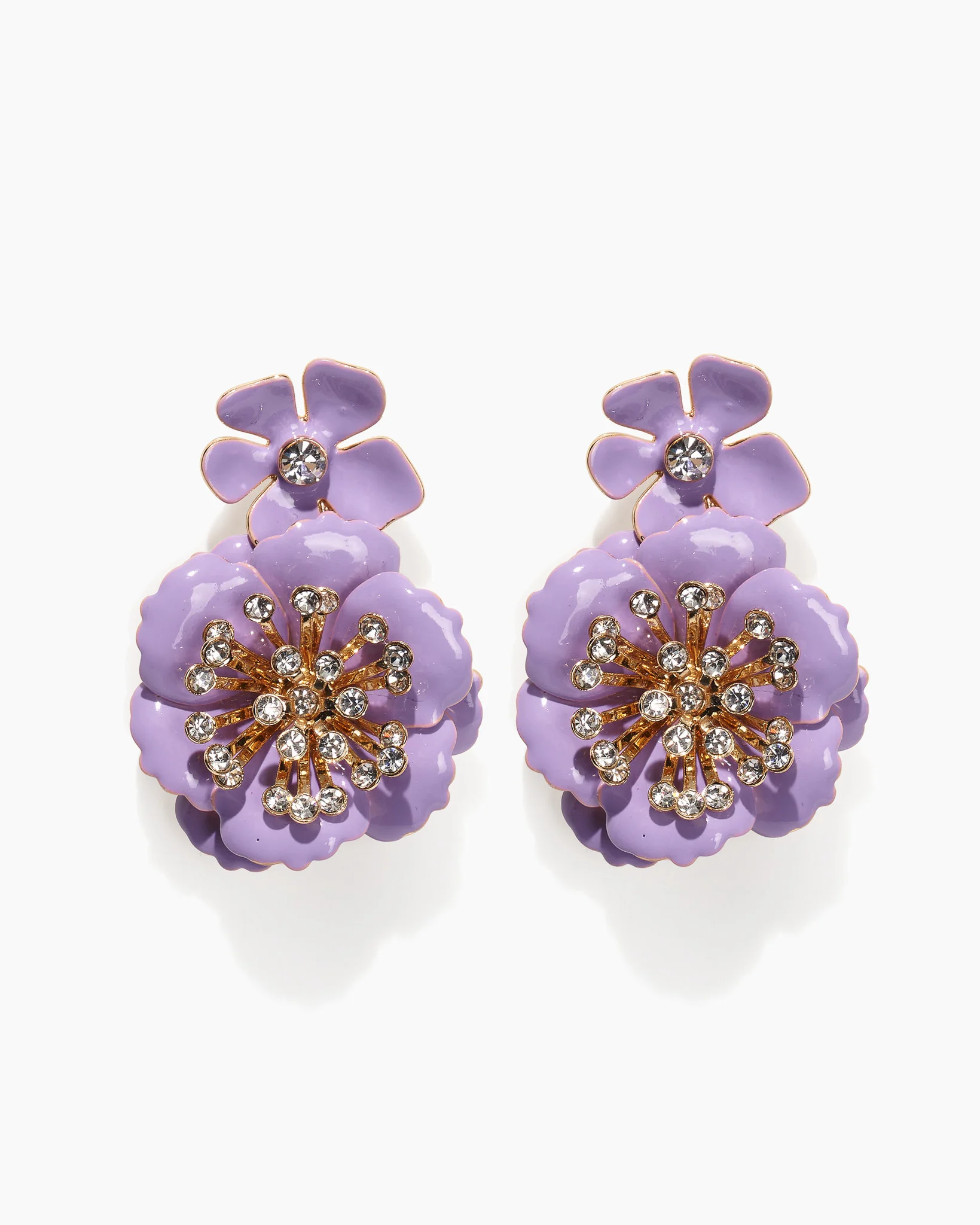 Crafted in the form of violets, these enamel earrings pay homage to Madrid’s most iconic confections – the city’s beloved violet candies. SKU S2636N209MET COMPOSITION & CARE 44% Brass 12% Steel 27% Enamel Epoxy 15% Glass Stone 2% Cubic Zirconia Washing Instructions Spot Clean Only Made in China