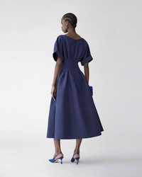 Crafted of lustrous silk faille, this navy dress evokes vintage glamour with wide rolled sleeves and a seamed waist that flares out to a full skirt. Side pockets Concealed zip fastening at back SKU R2611N553SFA SIZE & FIT Close fit to the bodice with flared hem Midweight silk-faille Model is 178cm/ 5’10” and is wearing a US 2 Bust: 32" Waist: 23" Hips: 34" COMPOSITION & CARE 100% Silk Washing Instructions Dry Clean Only Made in United States of America