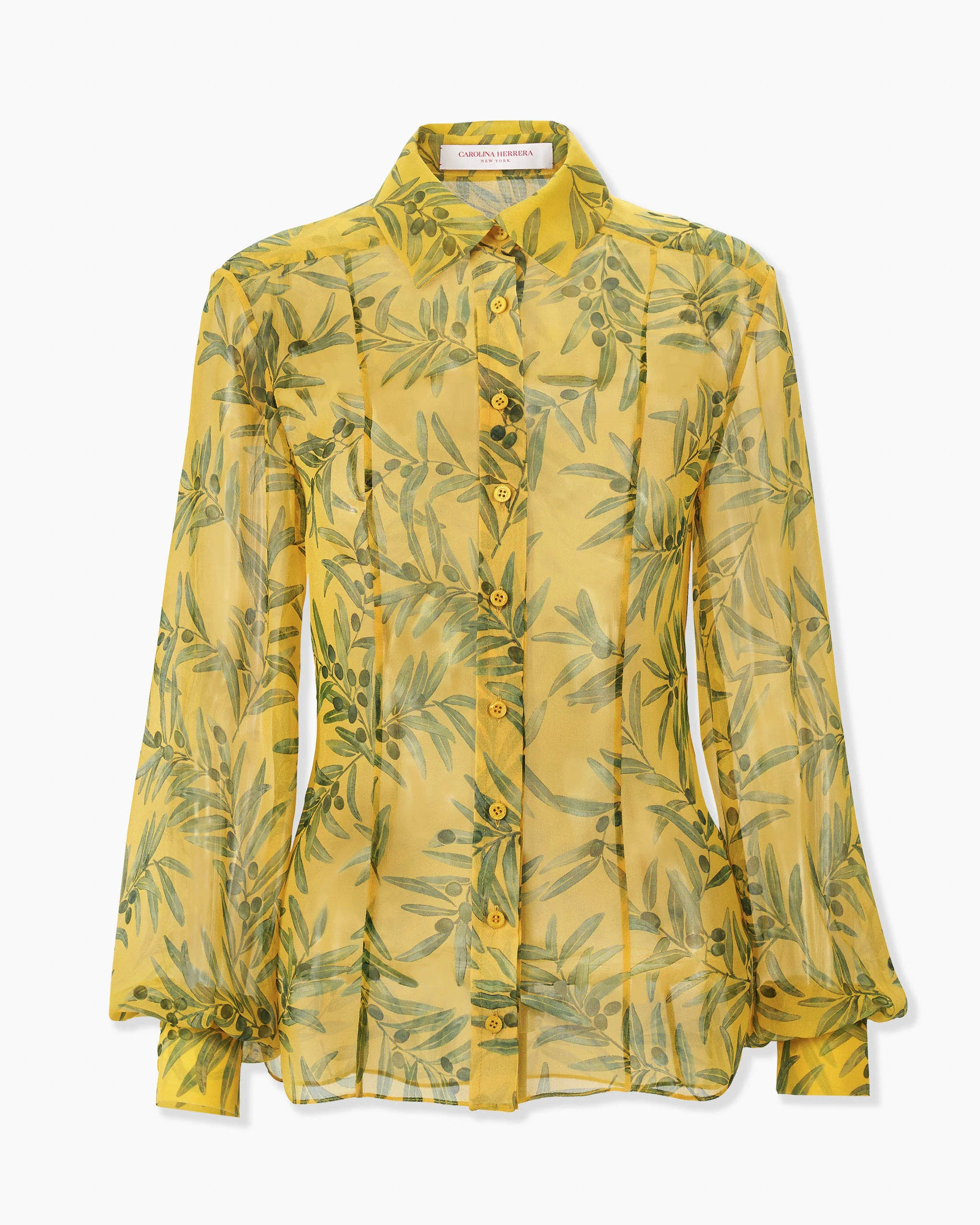 Cut from airy silk chiffon, this chic button-down is printed with olive branches inspired by the season's classical Greek motifs. Pair it with the matching wide-leg Iris pants from the collection. Buttoned closures at the front SKU R2611N209OBC SIZE & FIT Slim fit Lightweight silk-chiffon Model is 177cm/ 5’9” and is wearing a US 2 Bust: 31" Waist: 24" Hips: 35.5" COMPOSITION & CARE 100% Silk Washing Instructions Dry Clean Only Made in United States of America