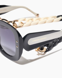 Add a touch of glamour to any ensemble with these oversized sunglasses, crafted in tortoiseshell acetate with contrasting inserts on the temples and a detachable chain inspired by Herrera jewelry. Oversized acetate frames Removable acetate chain Iconic rounded studs Acetate temples with contrasting insert Striped metal hinges Rounded tips with CH monogram 100% UV protection SKU F2456N401SUN