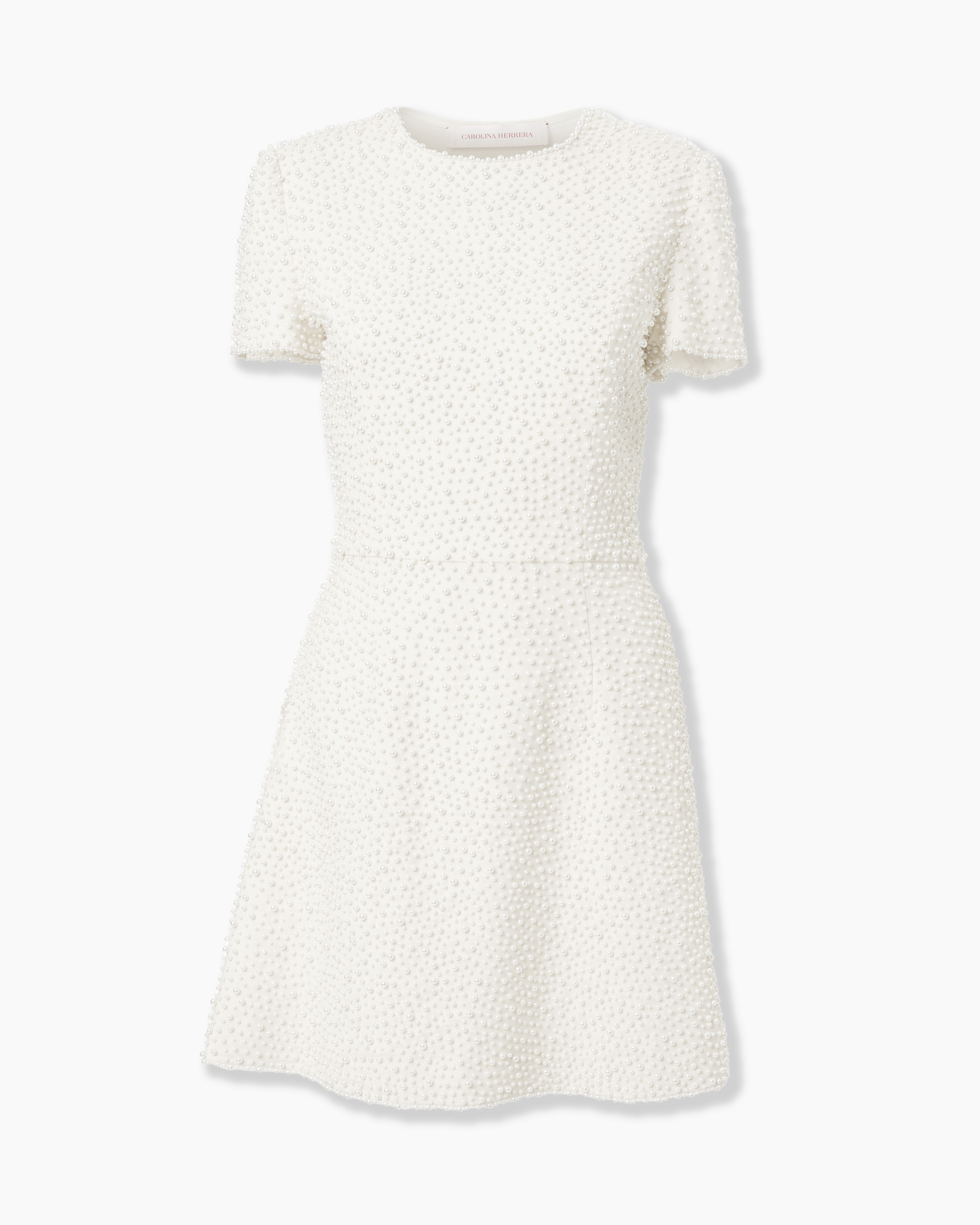 Hand-embroidered with delicate pearls, this stretch-wool dress combines a minimalist silhouette with refined embellishment. Style it with pearl earrings for a chic monochrome look. Concealed zip fastening at the back SKU C2611E518BWT SIZE & FIT Slim fit bodice with mini skirt Heavyweight stretch-wool Model is 175cm/ 5’9” and is wearing a US 2 Bust: 31" Waist: 23.5" Hips: 35.5" COMPOSITION & CARE 97% Virgin Wool 3% Elastane Washing Instructions Dry Clean Only