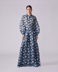 These floor-length palazzo pants are cut from peony-print crepe organza with a dramatic ultra wide-leg silhouette. SKU P2511N407PCO SIZE & FIT Extra wide-leg fit, extra-long length Lightweight crepe Model is 180 cm/ 5’11” and is wearing a US 2 Bust: 32" Waist: 23" Hips: 35" COMPOSITION & CARE 100% Silk Washing Instructions Dry Clean Only Made in United States of America
