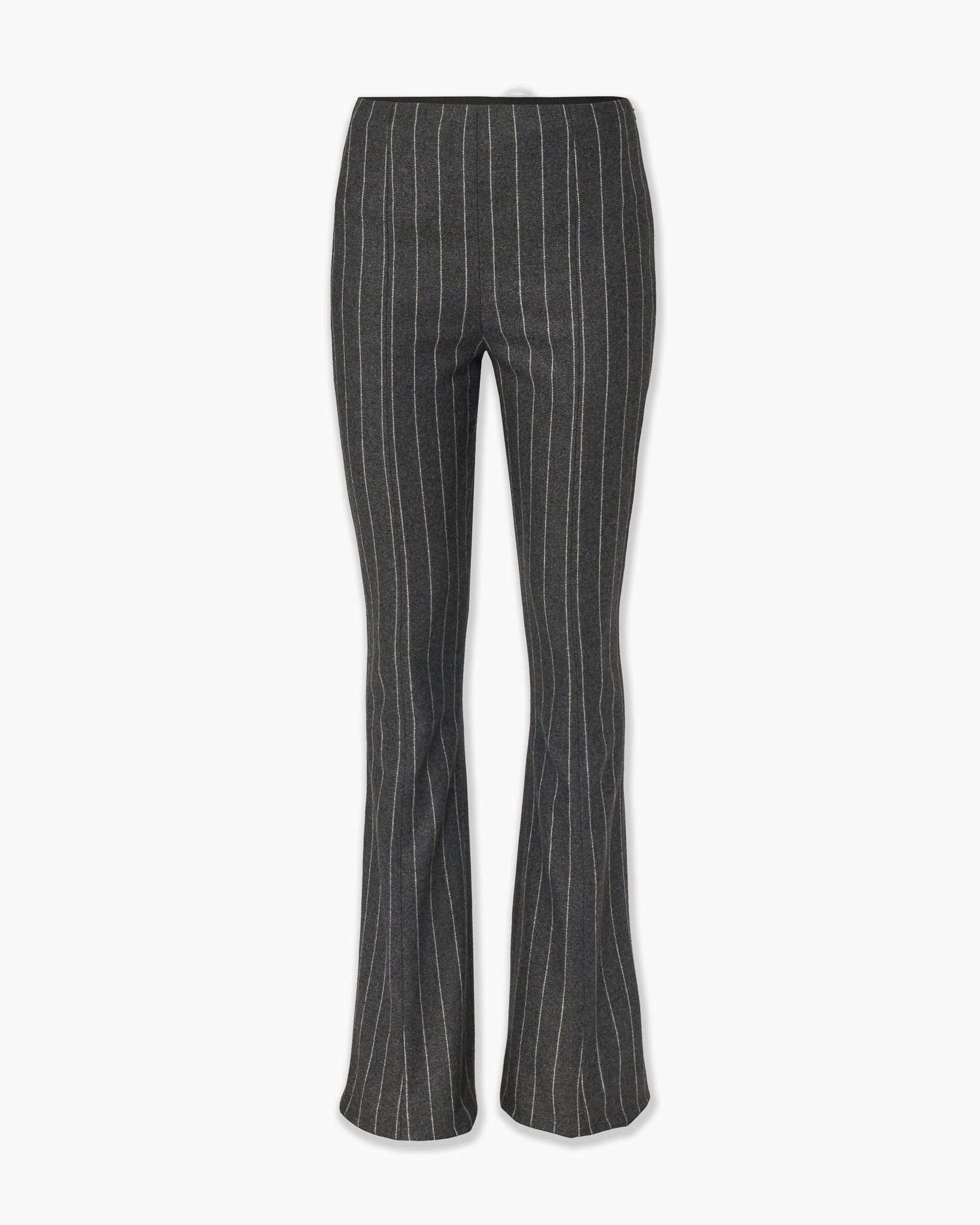 These pants are cut from pinstriped wool-blend flannel in a modern bootcut silhouette, for a fresh twist on traditional tailoring. Style with matching pieces from the collection. Concealed zip closure at the side SKU F2511N421PFN SIZE & FIT Slim fit with flared hem Midweight stretch-flannel Model is 179cm/ 5’11” and is wearing a US 2 Bust: 29.5" Waist: 22" Hips: 34.5" COMPOSITION & CARE 46% Reinforced Woven, 36% Linen/Viscose Blend, 17% Recycled Nylon, 1% Elastane Washing Instructions Dry Clean Only Made in Italy