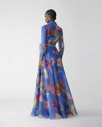 This season our iconic trench gown is reimagined in sheer crepe organza, printed with painterly poppies. The fitted bodice flares out to a full floor-length skirt, defined with a self-tie sash. Buttoned closures at the front Self-sash SKU R2611N721PRG SIZE & FIT Relaxed fit Lighweight silk-organza Model is 178cm/ 5’10” and is wearing a US 2 Bust: 32" Waist: 23" Hips: 34" COMPOSITION & CARE 100% Silk Washing Instructions Dry Clean Only Made in United States of America