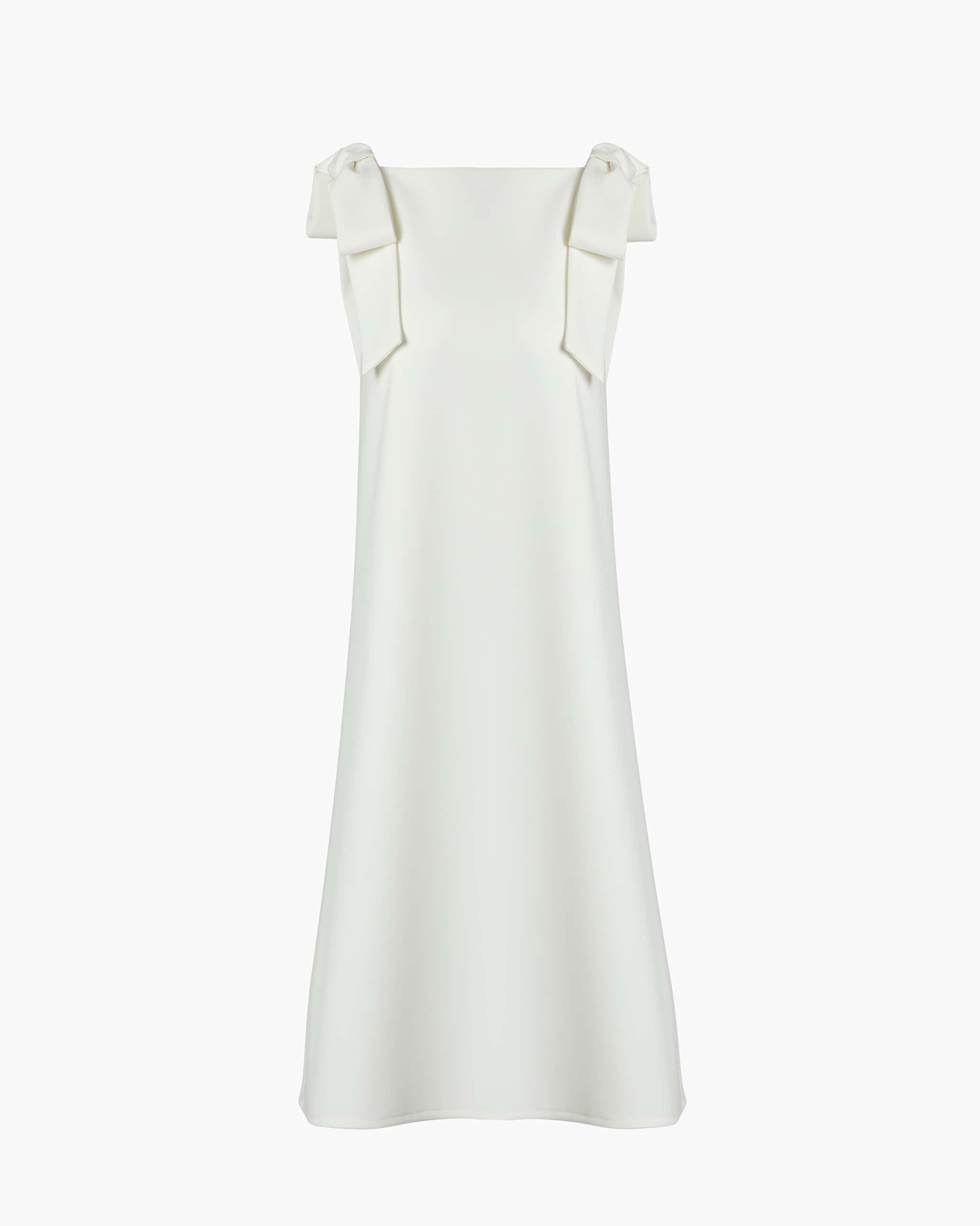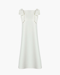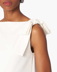 Shoulder bows add a feminine touch to this sleeveless shift dress, crafted in fluid white crepe. Dress it up or down. Bow detail on shoulders Concealed zip fastening at back Fully lined Length shoulder to hem: 37.5 inches Fit Fits true to size Model Measurements Model is 178cm/ 5’10” and is wearing a US 2 Composition 92% Polyester, 8% Polyurethane Washing Instructions Dry clean only Made in Italy SKU R2211N557SFR