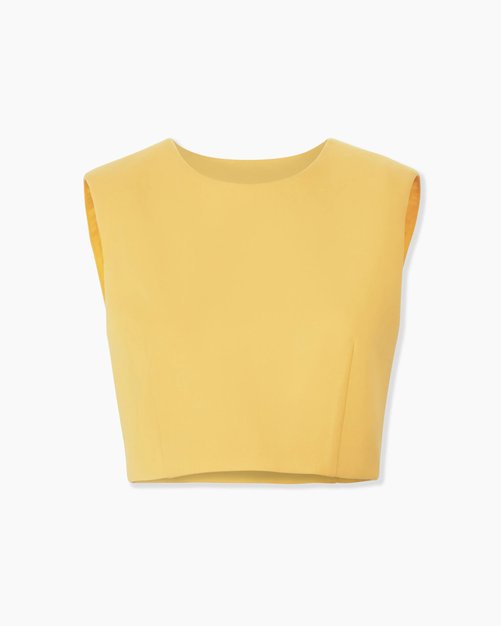 Cut from bi-stretch wool in a vibrant, sun-washed hue, this sleeveless top combines minimalist elegance with an alluring cropped hemline. Pair it with its coordinating column skirt. Concealed zip closure at the back SKU R2611N200BWT SIZE & FIT Slim fit Heavyweight stretch-wool Model is 178cm/ 5’10” and is wearing a US 2 Bust: 32" Waist: 23" Hips: 34" COMPOSITION & CARE 97% Wool 3% Elastane Washing Instructions Dry Clean Only Made in Italy